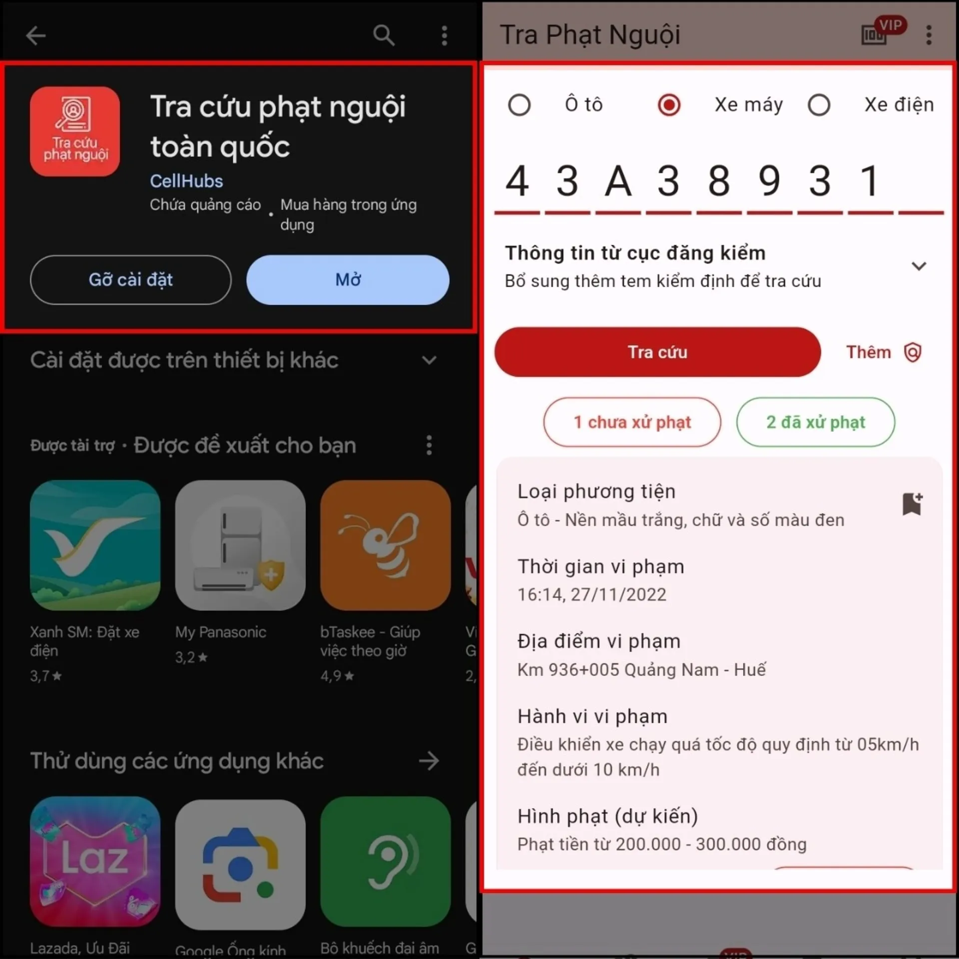 - Sau khi tra cứu vi phạm trên ứng dụng.