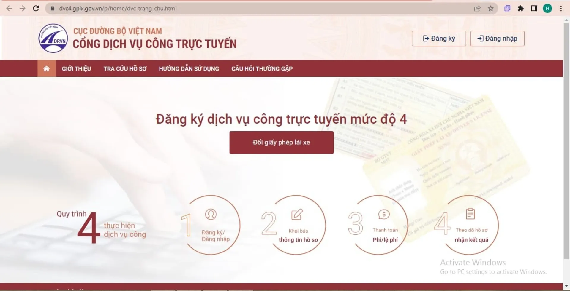 Hướng dẫn đổi giấy phép lái xe trực tuyến trên máy tính